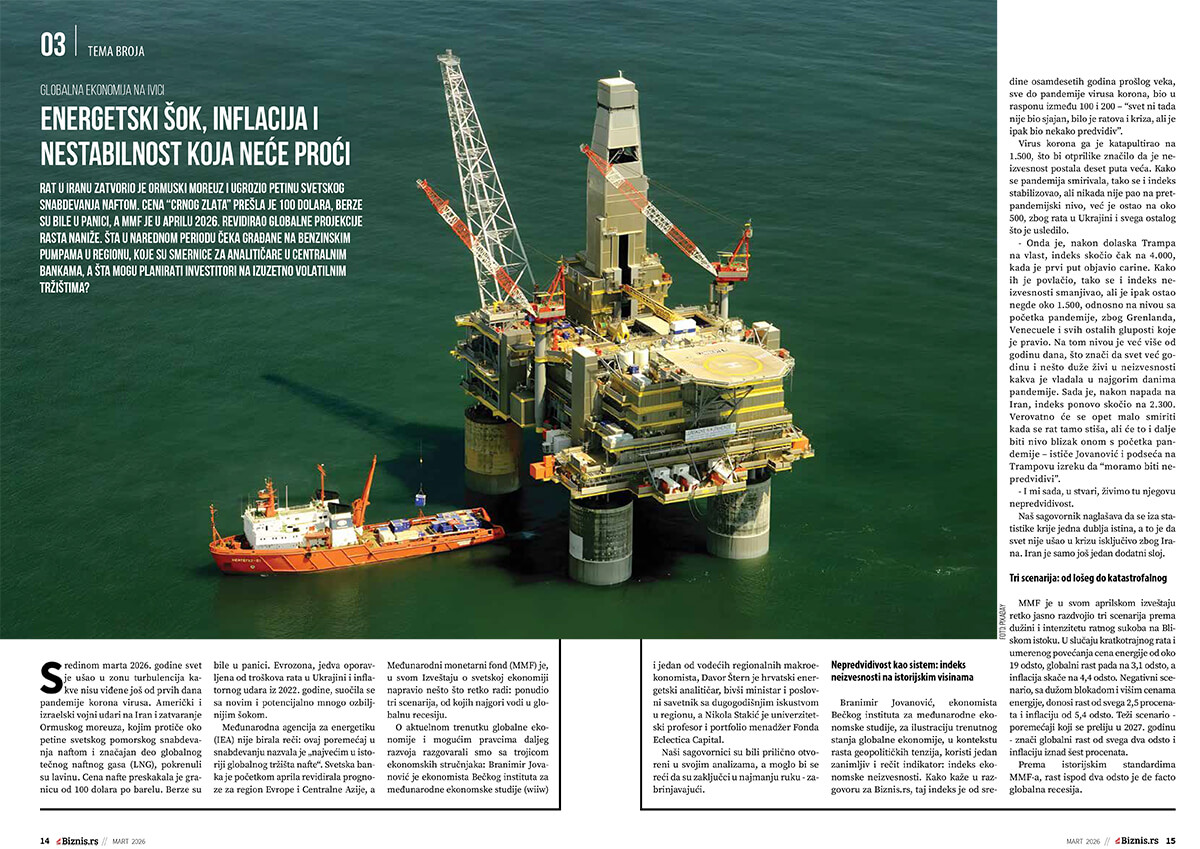 Rat u Iranu zatvorio je Ormuski moreuz i ugrozio petinu svetskog snabdevanja naftom. Cena “crnog zlata” prešla je 100 dolara, berze su bile u panici, a MMF je u aprilu 2026. revidirao globalne projekcije rasta naniže. Šta u narednom periodu čeka građane na benzinskim pumpama u regionu, koje su smernice za analitičare u centralnim bankama, a šta mogu planirati investitori na izuzetno volatilnim tržIštima?