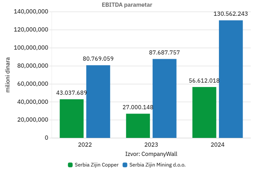 Finansijski rezultati kompanija Serbia Zijin Copper d.o.o. i Serbia Zijin Mining d.o.o. u posmatranim periodima od 2022. do 2024. godine ukazuju na dva različita poslovna modela unutar istog industrijskog sistema – jedan kapitalno intenzivan sa velikim operativnim troškovima i oscilacijama profitabilnosti, i drugi izrazito profitabilan sa snažnom EBITDA maržom i znatno manjim brojem zaposlenih.