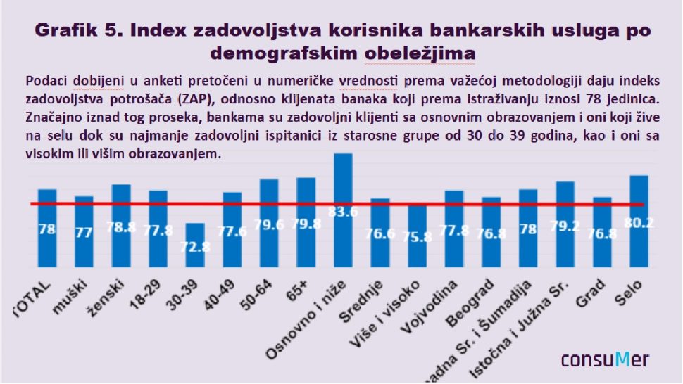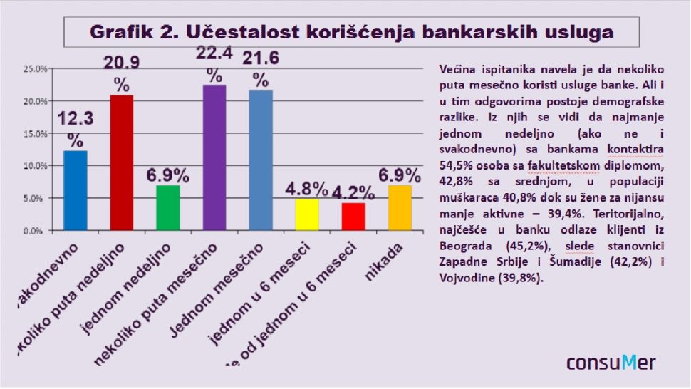 Istraživanje je pokazalo da cena usluga bankarskih proizvoda nije u prva četiri najvažnija kriterijuma za izbor banke, već dolazi nakon blizine objekta – što je najvažniji kriterijum, brzine usluge, ljubaznosti i profesionalnosti osoblja i opremljenosti banke mrežom bankomata ili digitalnim bankarstvom.