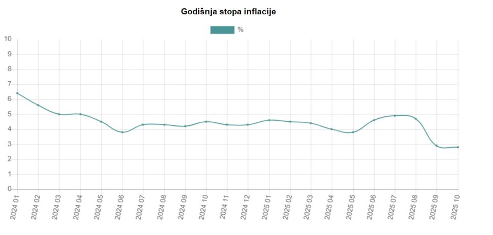 Cene proizvoda i usluga lične potrošnje u oktobru 2025. godine, u odnosu na septembar 2025. godine, u proseku su povećane za 0,5 odsto, saopštio je Republički zavod za statistiku.