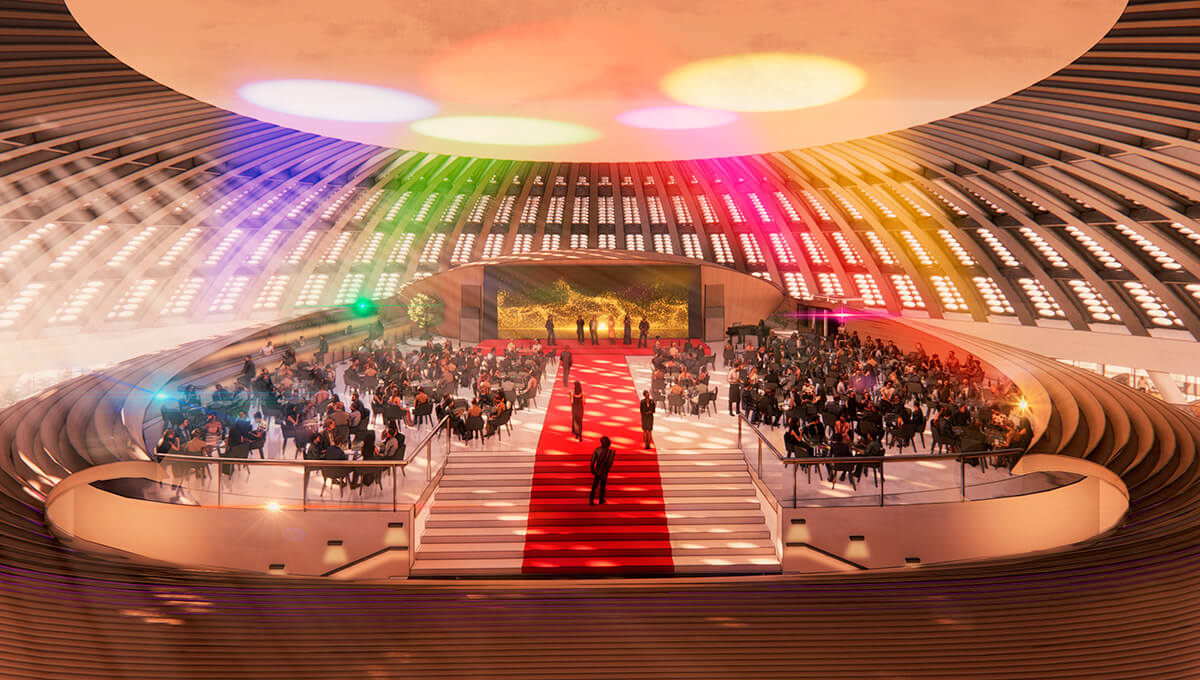 Krov kabarea osmišljen je kao savremeni food hall, prostor iznad pozorišta nudi fine dining, a veliki gradski događaji odvijaće se na krovu operske sale.