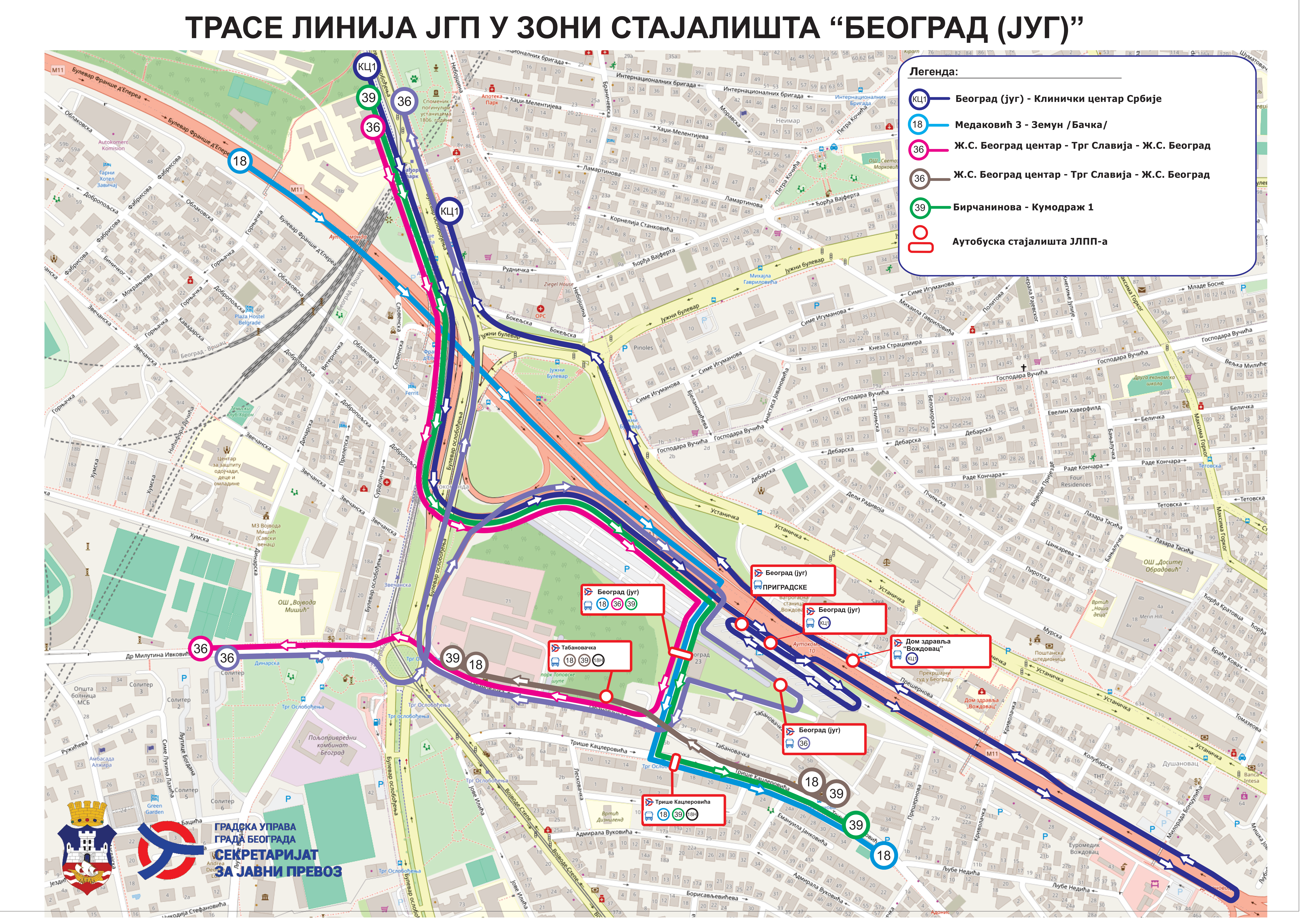 Preusmeravanjem navedenih linija javnog gradskog prevoza, svim korisnicima na lokaciji autobuskog stajališta „Beograd Jug“ omogućena je veza sa sledećim delovima grada i centrima atrakcije: linija 36 – ŽS „Beograd centar“, Klinički centar Srbije, Trg Slavija, Savski trg, Beograd na vodi. Linija 18: Zemun, Novi Beograd, Beogradska Arena, Voždovac, Braće Jerković, Medakovića 3. Linija 39: Trg Slavija, Klinički centar Srbije, Voždovac, Kumodraž.